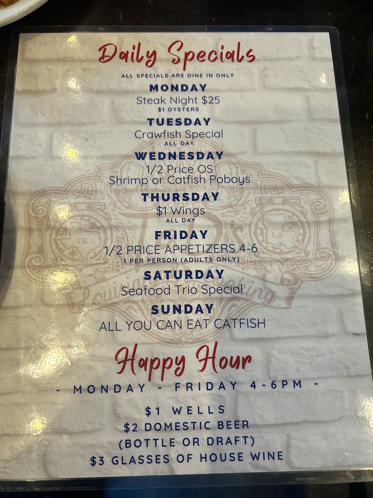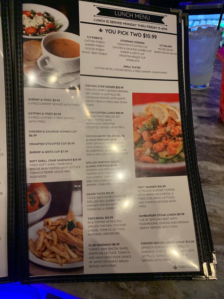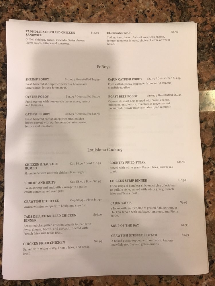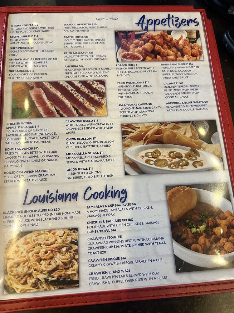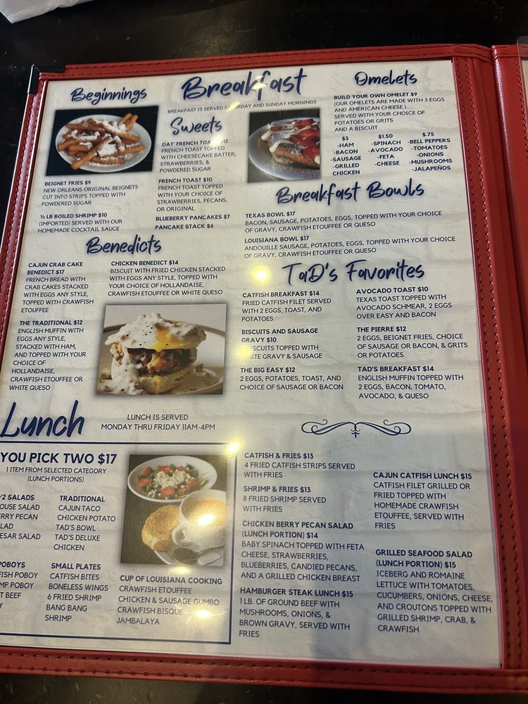 TaD's Louisiana Cooking in Katy, TX is a hidden gem offering a blend of sports bar, steakhouse, and seafood restaurant vibes. With a plethora of amenities like outdoor seating, wheelchair accessibility, and free Wi-Fi, this spot caters to all needs. The diverse menu includes dishes like Shrimp and Fries, Catfish and Fries, and Chicken and Sausage Gumbo, showcasing the rich flavors of Louisiana cuisine. The Breakfast Benedicts section is a definite must-try, with options like Chicken Benedict and Cajun Crab Cake Benedict that are sure to tantalize your taste buds. TaD's provides a casual dining experience with excellent service, making it a go-to spot for lunch, dinner, or dessert. Don't miss out on the Happy Hour specials, full bar, and fun activities like pool tables and dancing. This spot is truly a food lover's paradise!